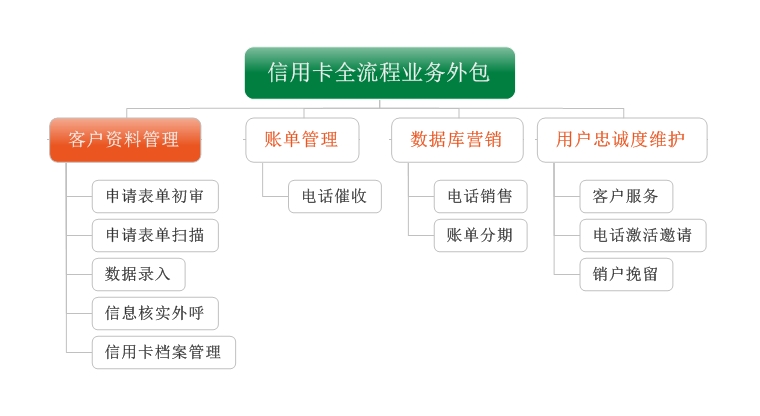 瀚海信用卡全流程業(yè)務(wù)外部服務(wù)涵蓋銀行信用卡用戶資料管理、銀行信用卡用戶忠誠(chéng)度維護(hù)、客戶賬單信息管理及數(shù)據(jù)庫(kù)營(yíng)銷等服務(wù),其中銀行信用卡用戶資料管理主要為以下五大類: